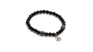 Dieses Armband aus schwarzen Onyx Beads besticht durch einen aufwendig hangearbeiteten Silberanhänger. Dieses Schmuckstück wurde von Ekat entworfen und trägt damit Ihre Handschrift. Es sind zwei kleine Buddha Köpfe aus Hämatit aufgefädelt. Ein cooles Statement, welches von Männern und Frauen gleichermassen getragen werden kann.